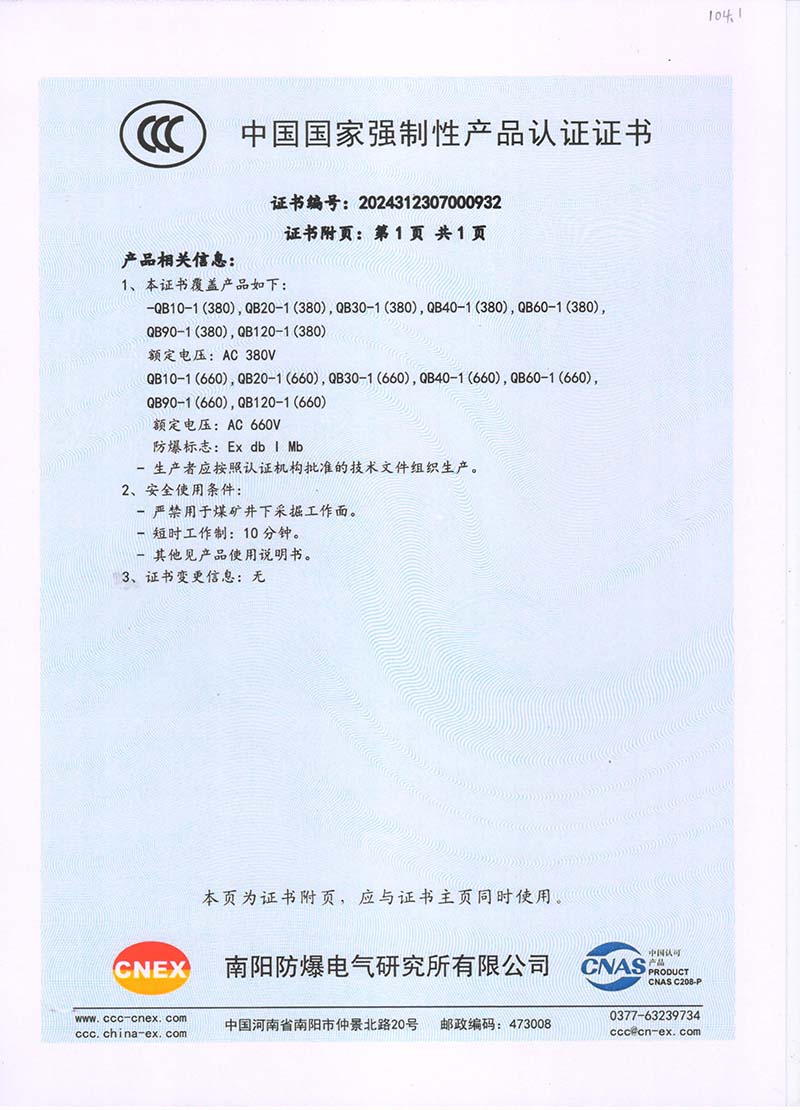 隔爆型QB QBZ QBT 220380中國國家強(qiáng)制性產(chǎn)品認(rèn)證證書107.1